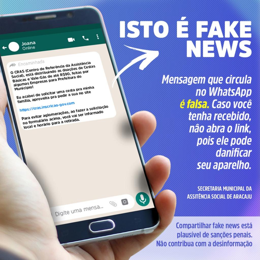 A mensagem, classifica pela Secretaria da Assistência Social de Aracaju com falsa, diz ainda que a doação foi feita por “algumas empresas” para a administração municipal, além de conter uma orientação de um possível cidadão que já fez a solicitação, para incentivar o clique no link enviado, que pode danificar seu aparelho e até mesmo roubar dados pessoais.