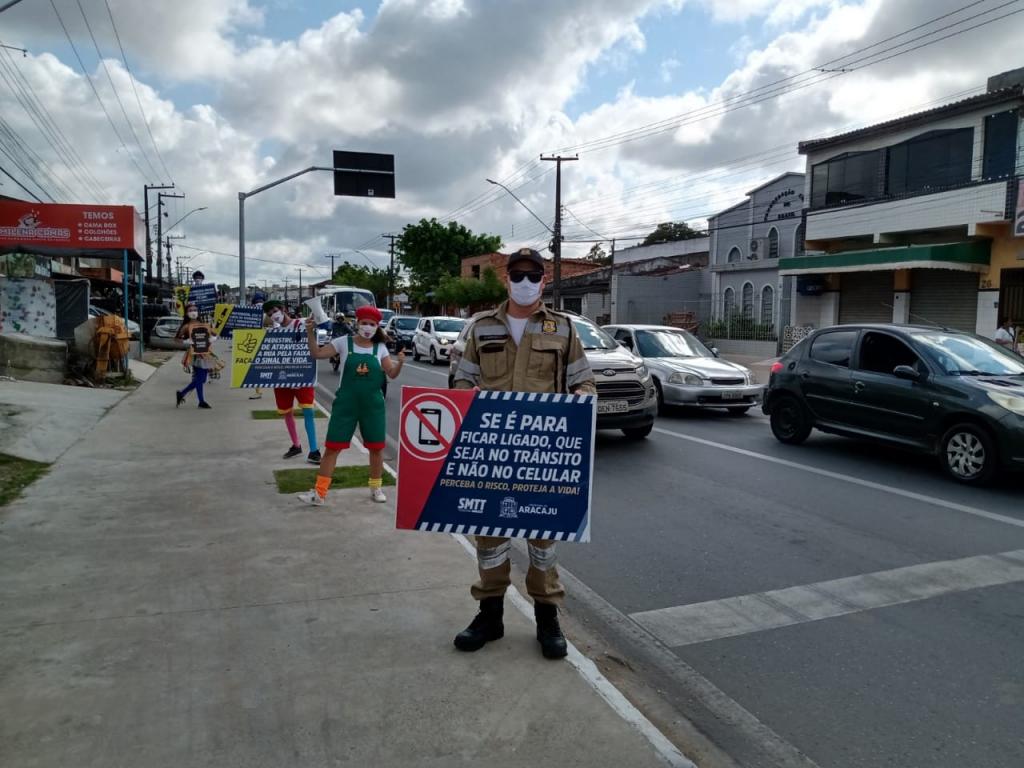 A Superintendência Municipal de Transportes e Trânsito de Aracaju (SMTT) realizou a primeira atividade educativa da programação de outubro na manhã desta terça-feira, 6. O local escolhido foi a avenida Euclides Figueiredo, zona Norte, no cruzamento com a travessa Benjamin Constant. O foco da ação foi a travessia segura do pedestre e o respeito às leis e sinalizações de trânsito.