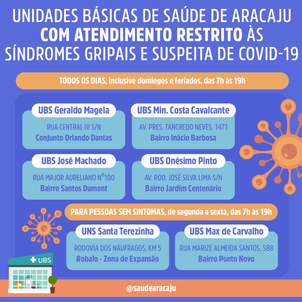 Para ampliar os pontos de testagem para covid-19, a Prefeitura de Aracaju, através da Secretaria Municipal da Saúde (SMS), amplia o quantitativo de Unidades Básicas de Saúde (UBS) para realização de testes RT-PCR. Atualmente, a rede dispõe de quatro UBS exclusivas para síndrome gripal (Ministro Costa Cavalcante, Onésimo Pinto, Geraldo Magela e José Machado). A partir desta terça-feira, 1°, as unidades Santa Terezinha, localizada do Robalo, e Max Carvalho, no Ponto Novo, estarão realizando o teste RT-PCR em assintomáticos.