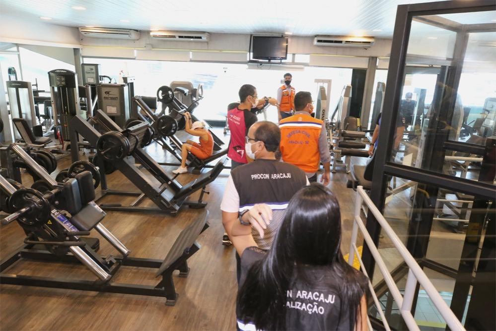 Nesta segunda-feira, 21, a Prefeitura de Aracaju, em ação coordenada pela Secretaria Municipal da Defesa Social e da Cidadania (Semdec), deu continuidade ao cronograma de fiscalizações para assegurar o cumprimento das medidas de biossegurança contra a covid-19 na capital sergipana, visitando, desta vez, academias. A ação visa, sobretudo, orientar os donos dos estabelecimentos a fim de evitar o contágio pelo novo coronavírus.