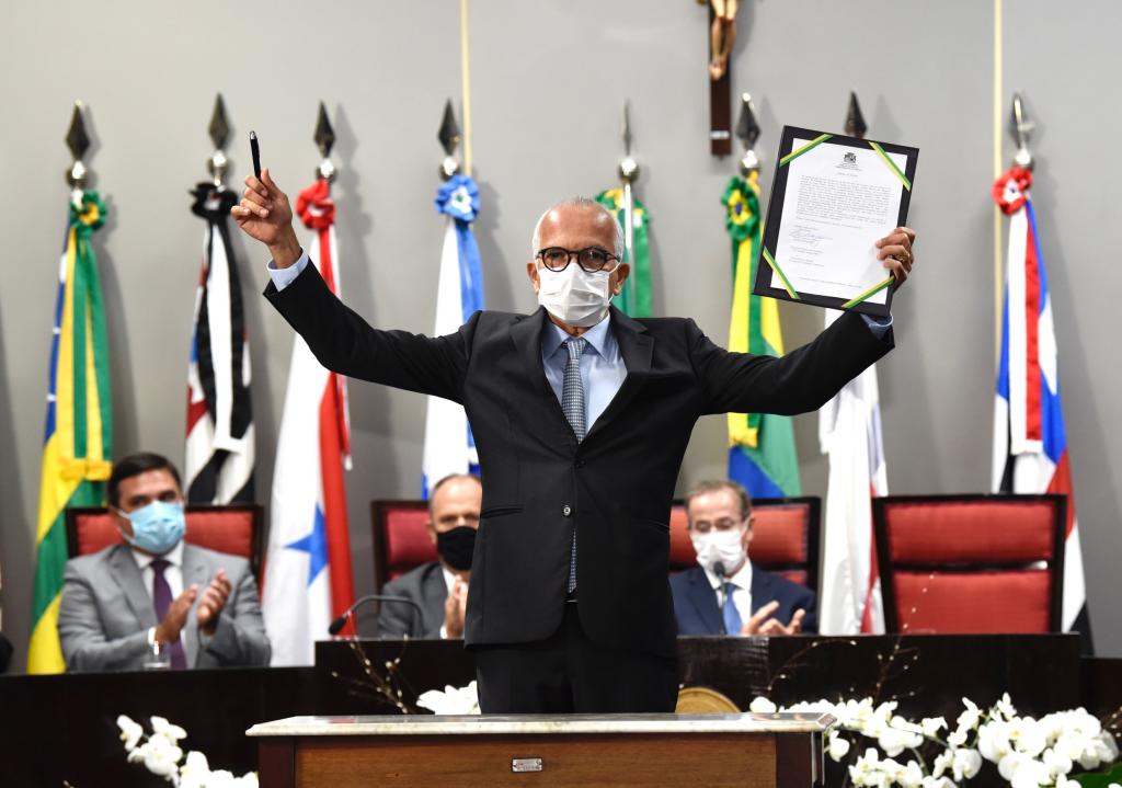 Pela quarta vez, o prefeito Edvaldo Nogueira assumiu o comando da capital sergipana ao tomar posse para o cargo, nesta sexta-feira, 1º. Ao lado da vice-prefeita, Katarina Feitoza, também empossada na solenidade, Edvaldo governará Aracaju pelos próximos quatro anos, de 2021 a 2024. Promovida pela Câmara Municipal de Aracaju, a cerimônia ocorreu no auditório do Tribunal de Justiça de Sergipe (TJ-SE), de forma restrita - em virtude da pandemia do novo coronavírus -, sendo transmitida virtualmente, e contou com a presença do governador do Estado, Belivaldo Chagas, e do deputado estadual, Garibalde Mendonça, que representou a Assembleia Legislativa de Sergipe.