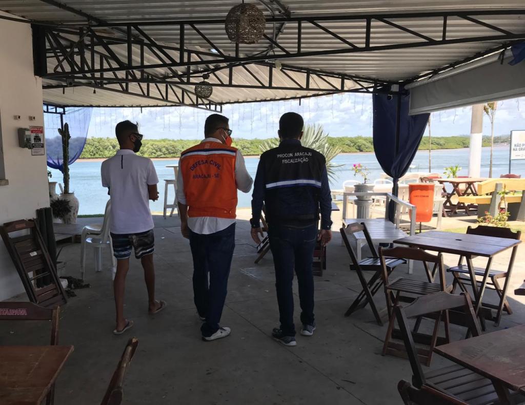 Durante o feriado prolongado da virada do ano, para assegurar o cumprimento dos protocolos de biossegurança contra a covid-19, a Prefeitura de Aracaju manteve intensificadas as ações de fiscalização a estabelecimentos comerciais, sobretudo nas regiões de maior movimentação da cidade.