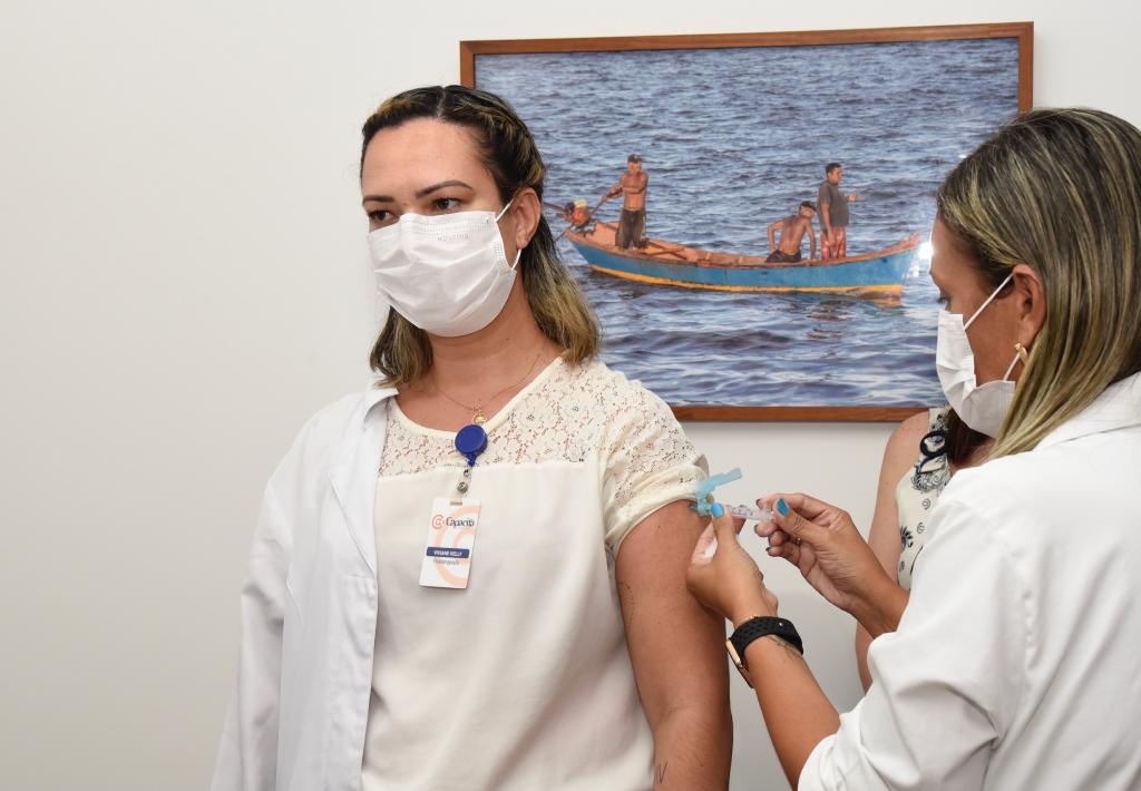 Sendo assim, nesta primeira etapa, estão sendo vacinados os trabalhadores da saúde, que estão na linha de frente do combate à pandemia, a exemplo dos que atuam em UTI's, urgências, unidades exclusivas para síndromes gripais, idosos que residem em abrigos ou asilos e seus cuidadores.