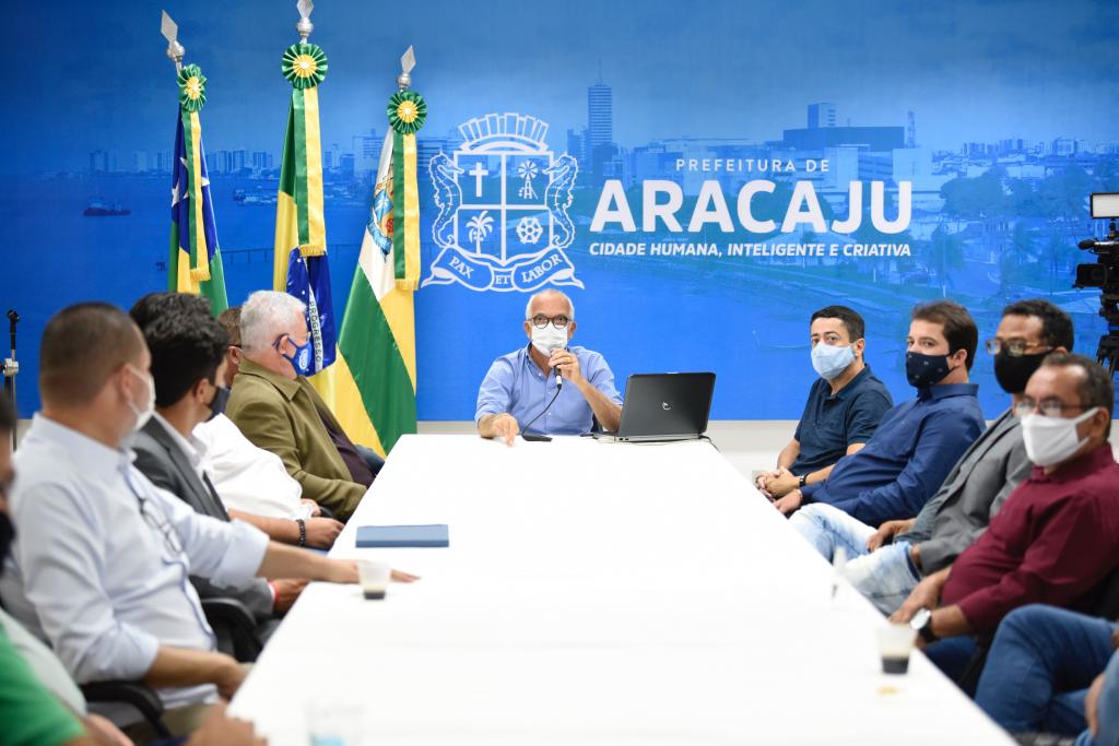 O prefeito Edvaldo Nogueira reuniu a bancada de vereadores da Câmara Municipal de Aracaju, na manhã desta quarta-feira, 27. No encontro, que ocorreu no Centro Administrativo, o gestor municipal apresentou o Planejamento Estratégico da cidade e o Plano de Vacinação contra o coronavírus no município. Edvaldo também ressaltou a importância da bancada para as conquistas alcançadas no mandato anterior e frisou que, nesta gestão, "quer contar com o apoio de todos pelo melhor da cidade".