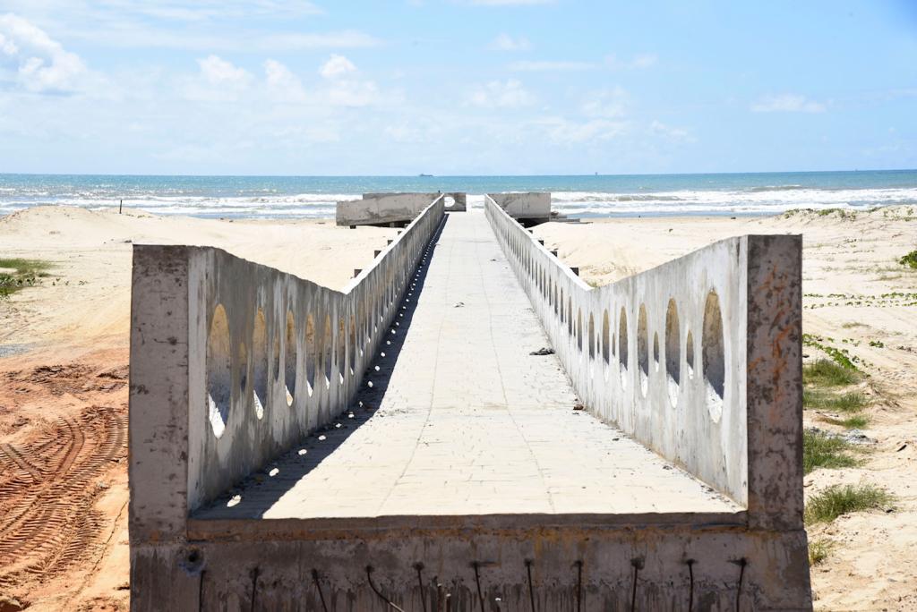 Na primeira etapa, além do calçadão, ciclovias e cinco passarelas, a obra inclui a construção de calçadas com acessibilidade, bolsões de estacionamento e áreas contendo aparelhos de ginástica, brinquedos, espreguiçadeiras, esculturas e bicicletário. Além disso, será feita a reconstrução da área do deque do banho doce, construção de mureta/banco linear em todo o perímetro e implantação de projeto paisagístico através da inserção de espécies vegetais nativas.
