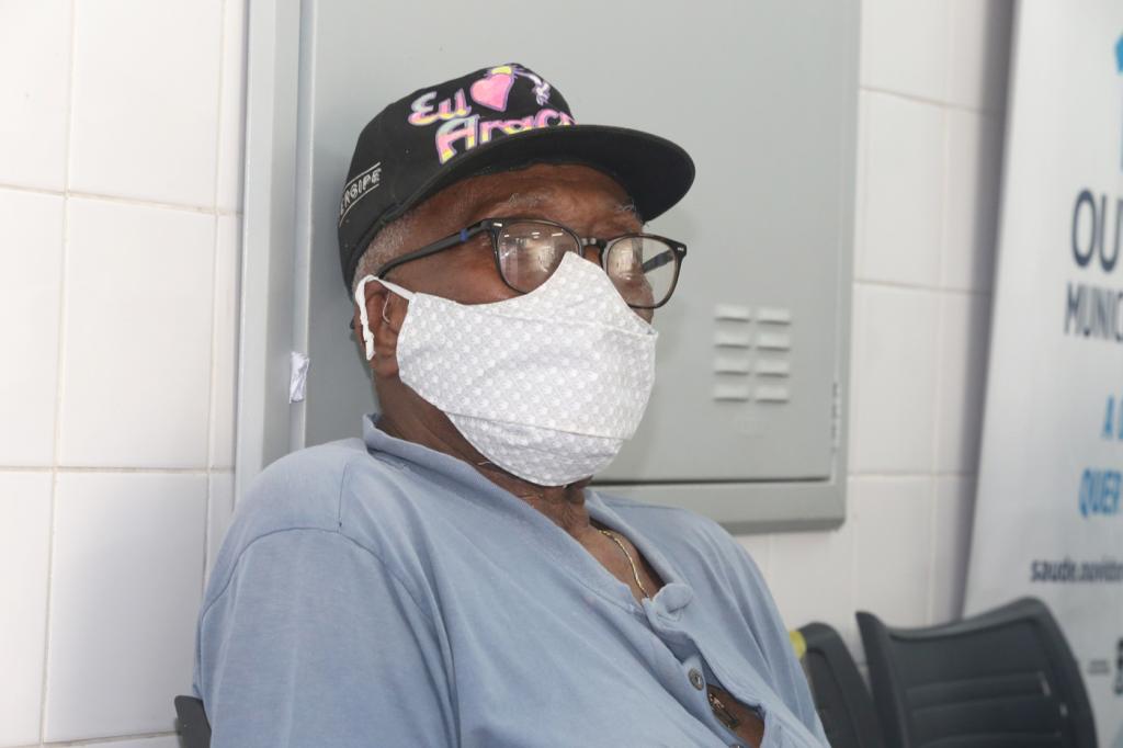 Foi na UBS Dona Sinhazinha, no bairro Grageru, que dona Aide Nascimento Cabral recebeu a primeira dose do imunizante contra a covid-19. Com 92 anos de idade, ela conta que optou por ser vacinada na unidade de saúde por estar mais perto de sua residência. Além disso, dona Aide conta que o período de pandemia não foi fácil, mas acredita que a situação vai mudar.
