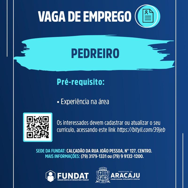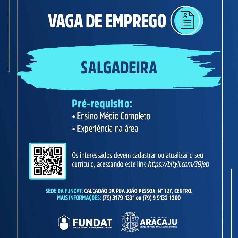 A Prefeitura de Aracaju, por meio do serviço de encaminhamento de mão de obra realizado pela Fundação Municipal de Formação para o Trabalho (Fundat), está intermediando a oferta de novas oportunidades de emprego para a população. São seis vagas para as funções de salgadeira, pedreiro e cabeleireira/manicure e escovista.