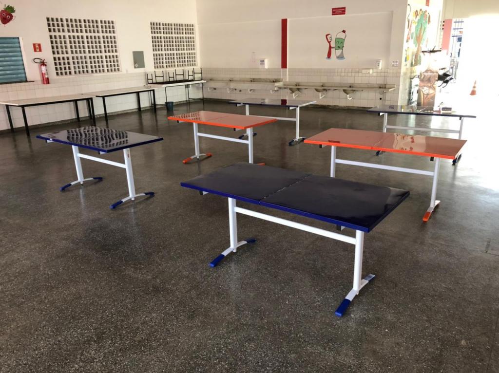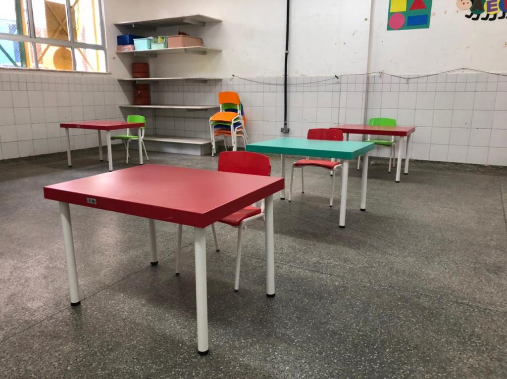 Entre os itens adquiridos, estão conjunto de mesa infantil com quatro cadeiras, conjunto para professor, quadro branco, conjunto de refeitório infantil, conjunto de refeitório para adulto, cama empilhável, estantes, armários, arcondicionados e poltronas.