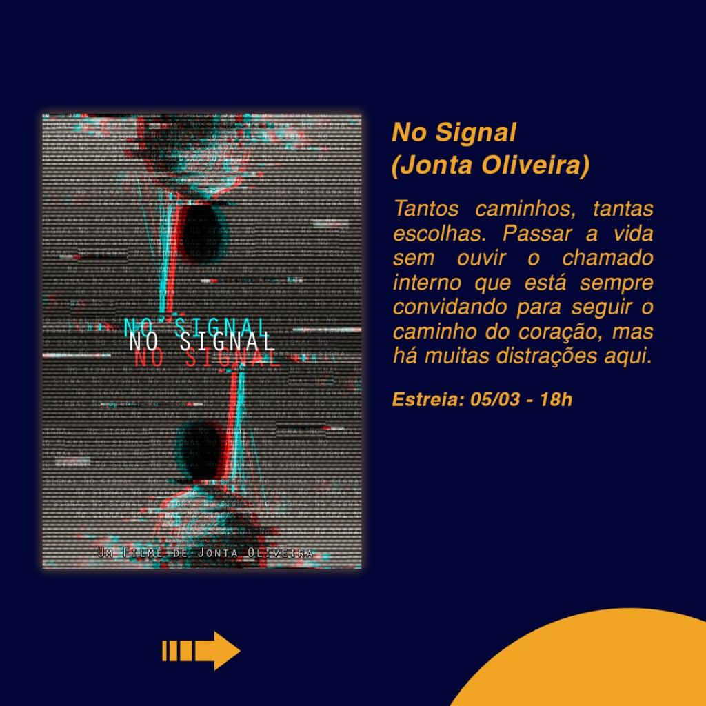 Na sexta-feira, dia 5, Jonta Oliveira abre a programação trazendo uma reflexão sobre a dificuldade das pessoas em seguir os caminhos que o coração “sugere” e a necessidade em ouvi-lo, através de sua obra intitulada “No Signal”.