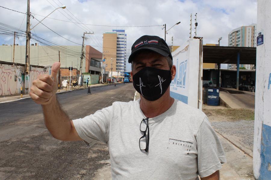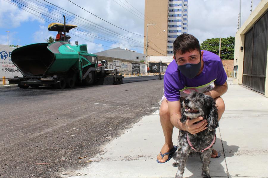 "Passo por aqui todos os dias para passear com meu cachorro e sempre vivenciava acidentes que os buracos causavam. Quando chovia criavam muitas poças de água, que atrapalhavam bastante, mas com essa iniciativa da Prefeitura, eu fico mais aliviado e feliz por saber que poderei andar e passar de carro tranquilamente por aqui’’.