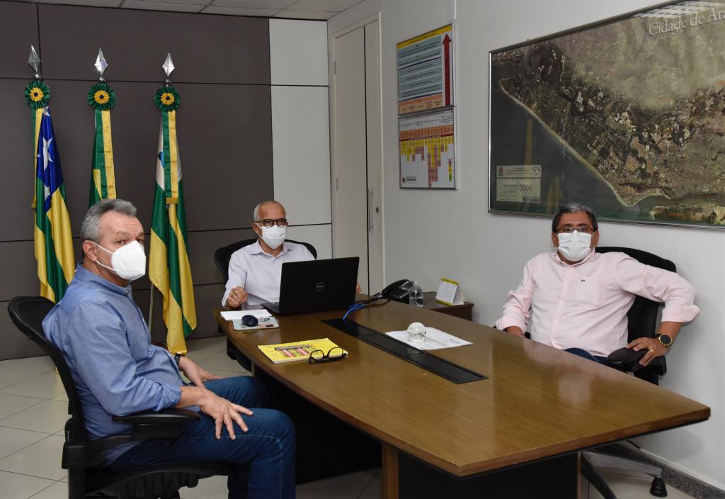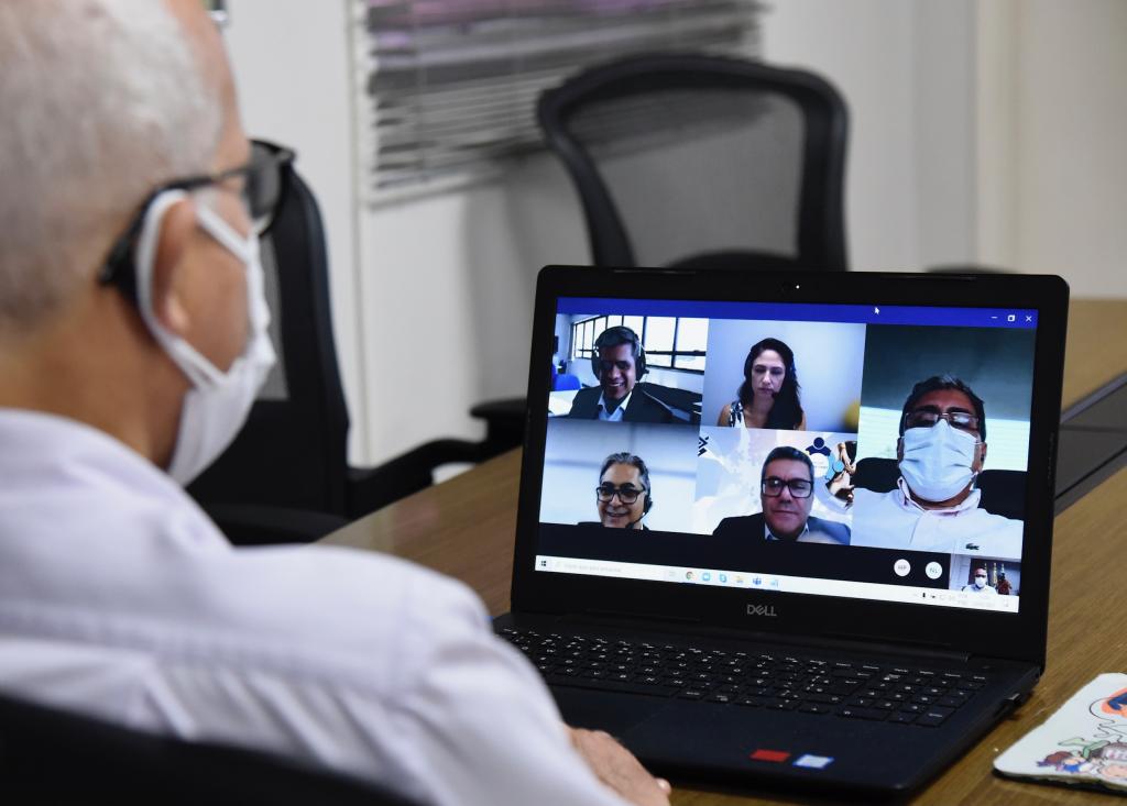 O prefeito Edvaldo Nogueira participou, na manhã desta quinta-feira, 25, de reunião virtual com a direção do Banco do Brasil para tratar de projetos e parcerias entre a instituição financeira e a Prefeitura de Aracaju. O superintendente nacional de governo do banco, Antonio Carlos Servo, e o superintendente do Nordeste de Governo, Christiano José dos Santos Carvalho, participaram do encontro.