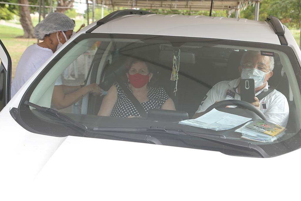 Por todas as UBS da capital, 545 idosos e dois profissionais de saúde foram vacinados. Já 490 idosos e 21 profissionais de saúde dirigiram-se ao drive-thru montado no Parque da Sementeira.