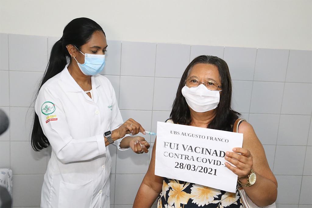 Na UBS Augusto Franco, vacinou-se o frei José Edilson, pároco da comunidade São Judas Tadeu, do bairro América. Ele fez apelo para que a população colabore com o poder público neste momento difícil.