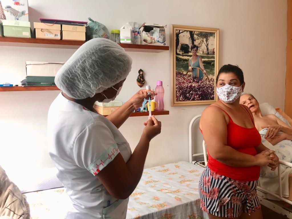 Para Fátima Rosendo, cuidadora da acamada Maria Macário de Santana, de 76 anos, o momento é de satisfação. “Para a gente, é uma satisfação enorme, porque muitos idosos não têm condições de ir até à Unidade, e a equipe de vacinação poder vir aplicar a vacina em casa, é muito gratificante”, afirma.