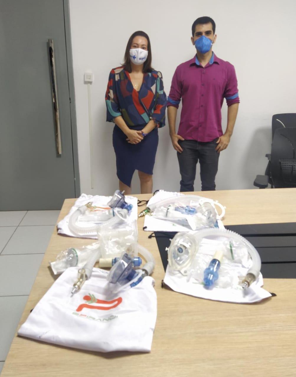 Nesta terça-feira, 13, a Secretaria Municipal da Saúde (SMS) recebeu, através do coordenador do projeto, a doação de quatro máscaras de VNI (Ventilação Não Invasiva) que serão utilizadas nos pacientes atendidos nos leitos de retaguarda do Município.