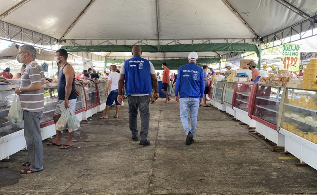 O trabalho de fiscalização se estende aos mercados municipais e feiras livres. Na ocasião, através da Diretoria de Espaços Públicos e Abastecimento (Direpa), são observadas as questões relativas à organização dos espaços públicos, bem como o respeito às medidas de enfrentamento à covid-19.
