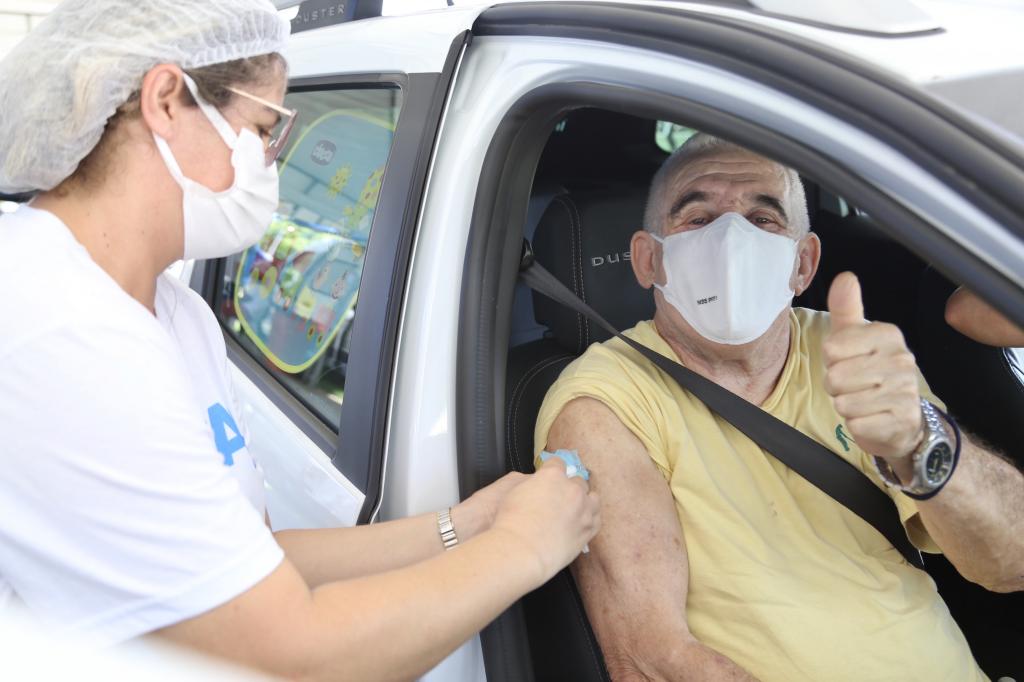 Para o público alvo da atual fase da campanha de vacinação contra a covid-19 (idosos a partir dos 60 anos, profissionais de saúde, trabalhadores de forças de segurança e salvamento e pessoas acima de 18 anos com síndrome de Down e autismo), nesta quarta-feira, a vacinação ocorreu no drive-thru montado no Parque Augusto Franco (Sementeira) e nas Unidades Básicas de Saúde (UBS) da capital.