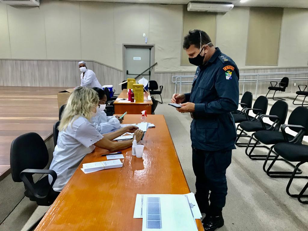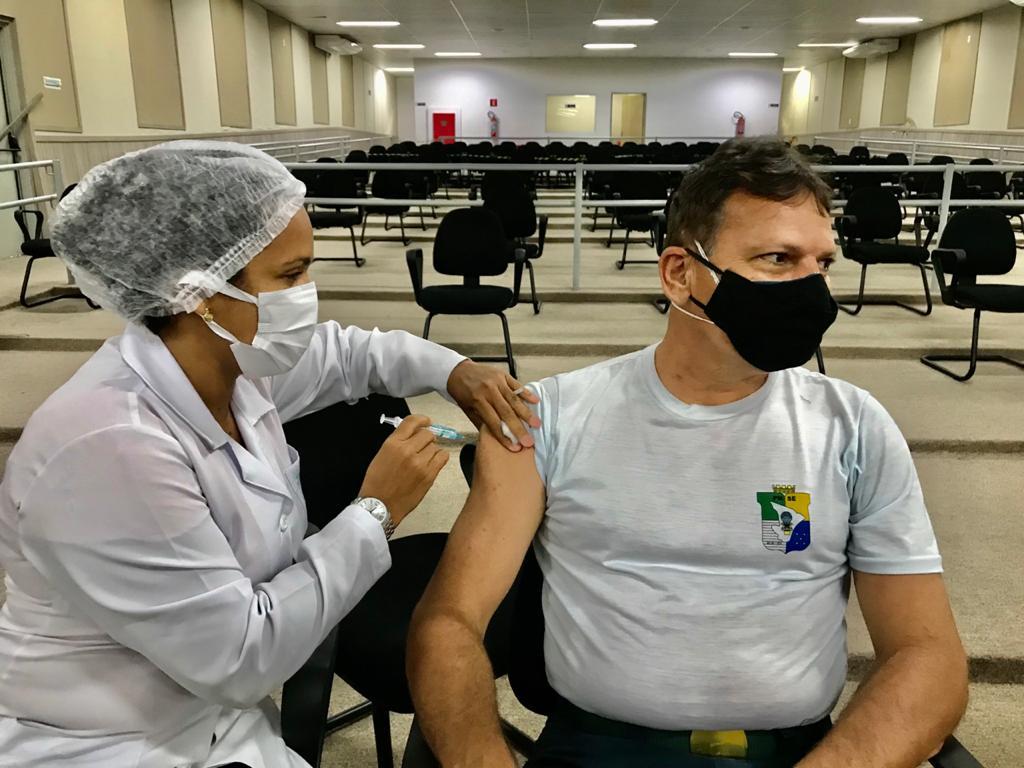 O major Giovane Feitosa recebeu a primeira dose na Escola Municipal Presidente Vargas e falou da sua rotina de trabalho. “Diariamente nós temos muito contato com as pessoas, principalmente porque lidamos com segurança pública, casos de detenção e a própria lei nos direciona para a utilização da força. A vacina é muito importante para a nossa prevenção, nos protegendo dessa doença que tem matado muita gente”, explicou.