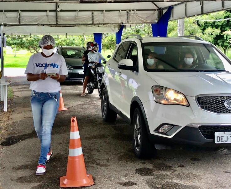 Para aplicação da primeira dose, idosos 60+, profissionais de saúde 40+, profissionais das forças armadas e forças de segurança e salvamento devem se cadastrar no portal VacinAju e aguardar a validação do código para se dirigir aos pontos de vacinação: Escola Municipal Presidente Vargas, das 8h às 16h, ou ao drive thru do Parque da Sementeira, 8h às 17h.