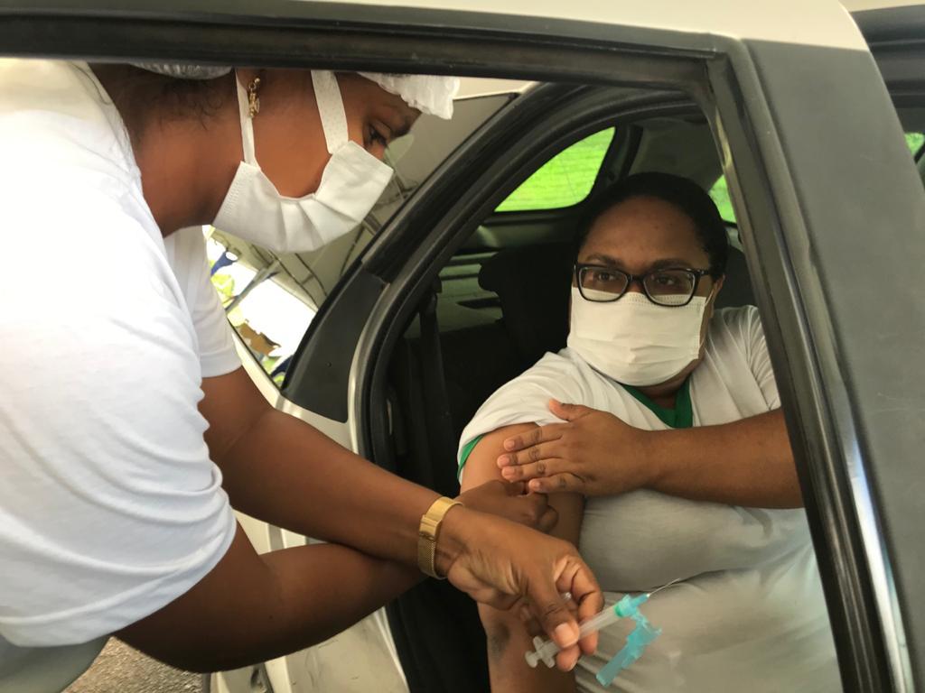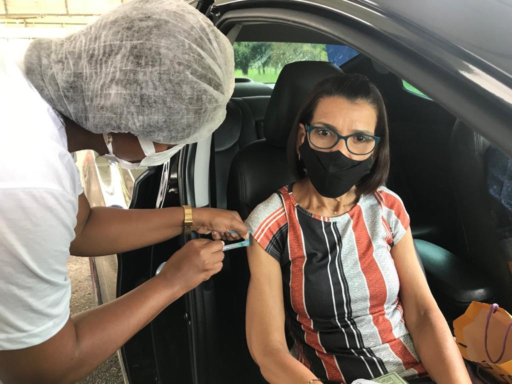 Já no drive thru, no Parque da Sementeira, dona Maria Auxiliadora Alves, 60 anos, recebeu sua primeira dose e falou o que a vacina representa para ela. “Eu estava muita ansiosa, fiz meu cadastro e fiquei aguardando a validação dele, como muito amor e carinho. Pois a vacina é a esperança de vida, um sentimento de alívio e felicidade”, disse.