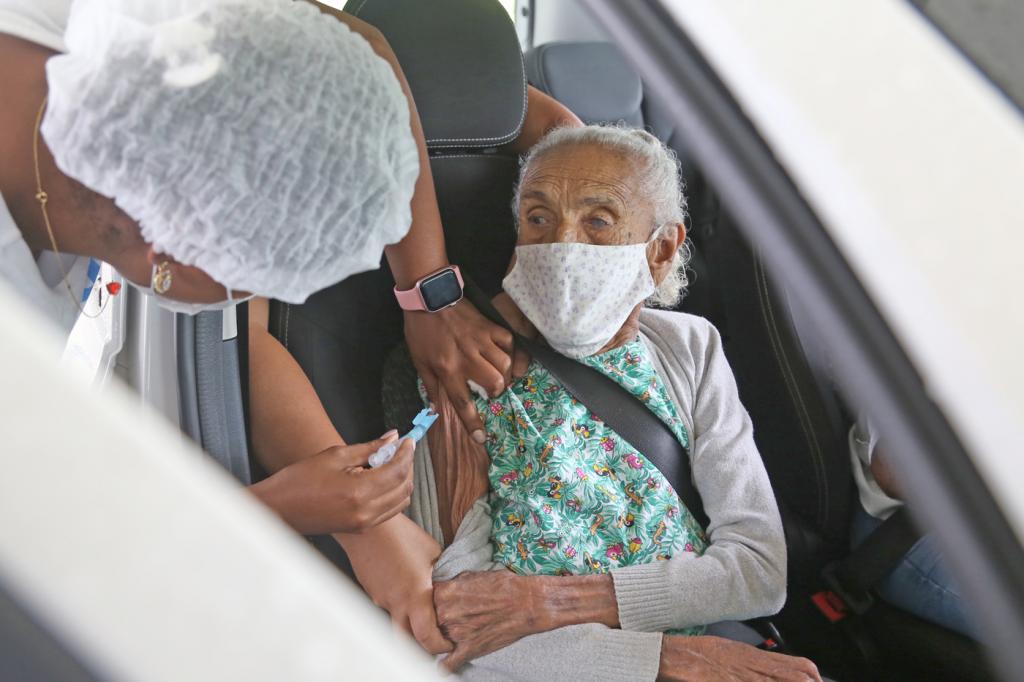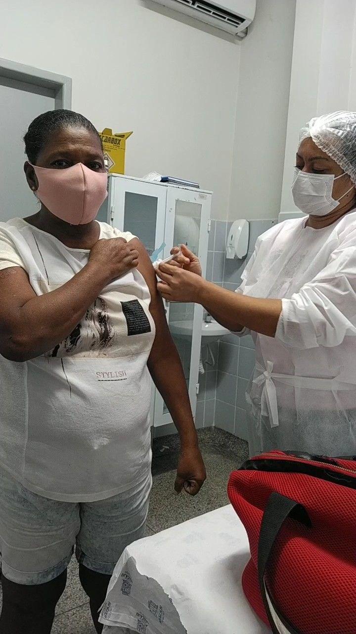 Cada vacina aplicada suscita sorrisos ou lágrimas de emoção. Enilda dos Santos, 57 anos, não escondeu a alegria ao receber a primeira dose na Unidade Básica de Saúde (UBS) Edézio Vieira de Melo. Ela relata que o filho, profissional de saúde, foi o primeiro a ser imunizado, depois foi a vez do pai, dos dois irmãos mais velhos e do cunhado. “É só chegar a hora que minha família vai se vacinar. Eu estava doida para tomar a vacina logo. Agora, chegou a minha vez”, diz, demonstrando a felicidade com uma sonora gargalhada.