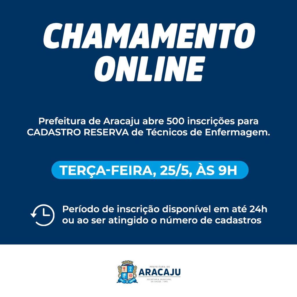 A Prefeitura de Aracaju, por meio da Secretaria Municipal da Saúde (SMS), abrirá, na próxima terça-feira, dia 25, às 9h, o chamamento público online para formação de cadastro reserva para 500 técnicos de enfermagem. O processo objetiva criar uma reserva para as equipes que atuam no enfrentamento da covid-19, no âmbito da Rede Municipal.