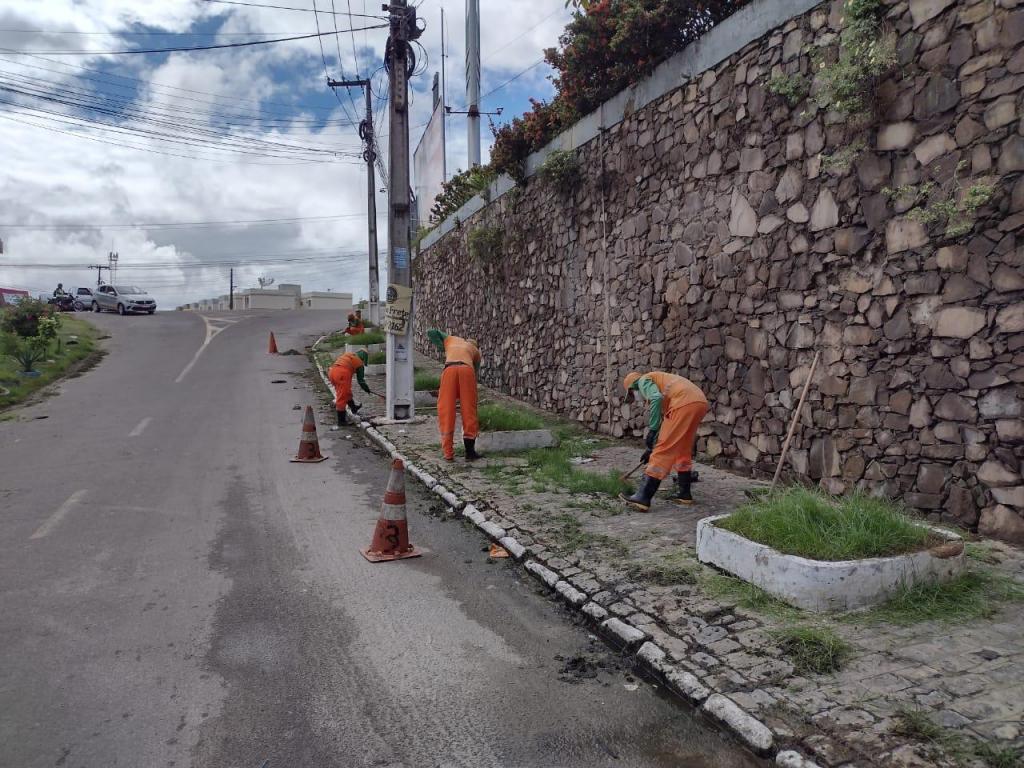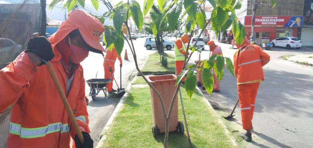 Nas proximidades da rua Major João Teles, os agentes efetuaram a manutenção dos jardins com poda em plantas de pequeno porte, gadanhamento e roçagem. Nessas intervenções, sempre que necessário há a reposição de grama e mudas danificadas. Já na avenida Farmacêutica Cezartina Régis, no conjunto Sol Nascente, os garis estiveram concentrados nos canteiros centrais.