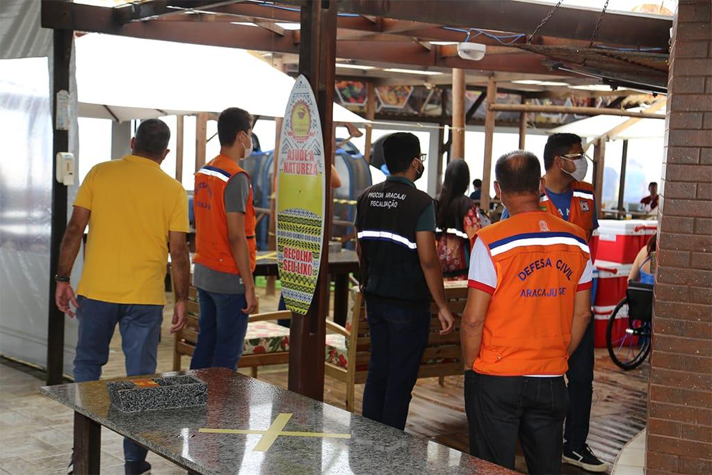 Na busca por fazer cumprir as determinações restritivas descritas nos decretos estadual e municipal, a Prefeitura de Aracaju, por meio da Secretaria Municipal da Defesa Social e da Cidadania (Semdec), intensificou a fiscalização em bares e restaurantes neste sábado, 22. O funcionamento destes estabelecimentos está liberado até às 21h, assim como o acesso às praias, até o toque de recolher, às 22h.