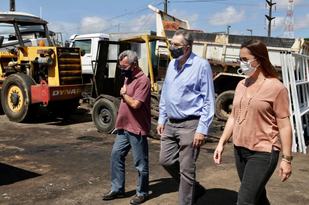 A vice-prefeita e o secretário também estiveram no acampamento da Emurb, onde ficam os equipamentos da Empresa Municipal, responsáveis, por exemplo, pelos serviços de recapeamento asfáltico, tapa-buraco, galerias de drenagem, etc.