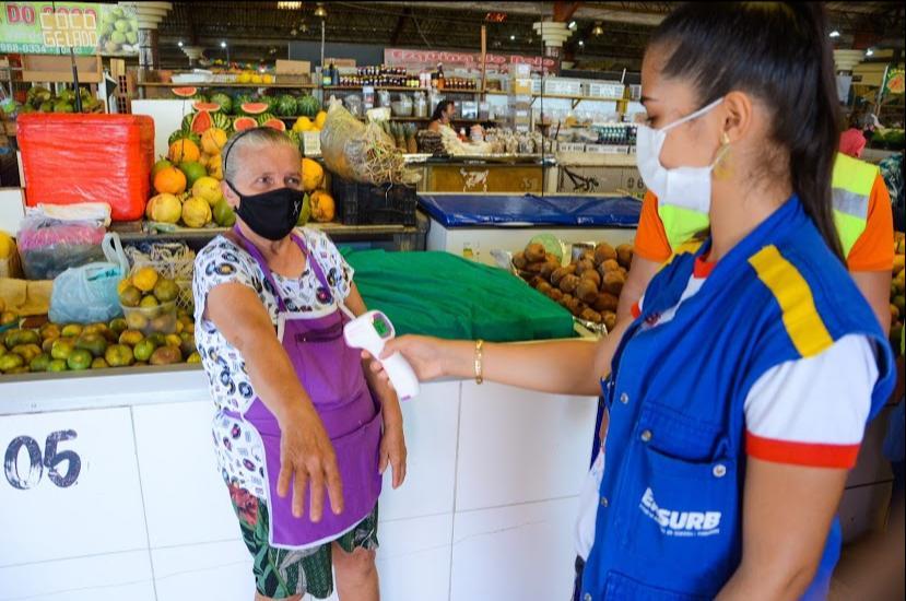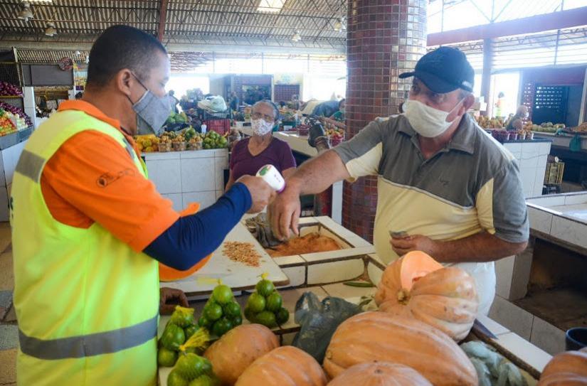 Para garantir a manutenção dos cuidados relativos à disseminação do novo coronavírus na capital sergipana, a Prefeitura de Aracaju realizou, nesta terça-feira, 25, mais uma ação de monitoramento com aferição da temperatura corporal dos permissionários do mercado Maria Vírgínia Leite Franco, na região central da cidade.