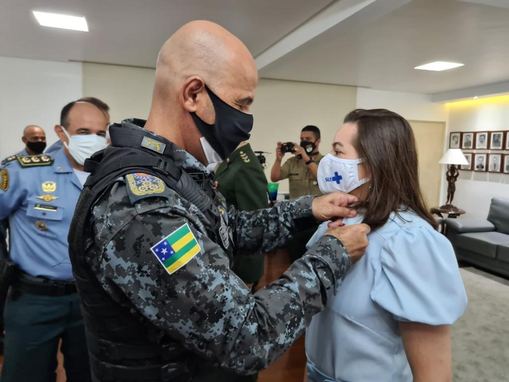 A solenidade ocorreu na sede do Comando Geral da PM, com público restrito e seguindo protocolos sanitários. O comandante da corporação, coronel Marcony Cabral, destacou o trabalho da equipe da SMS no enfrentamento à pandemia.