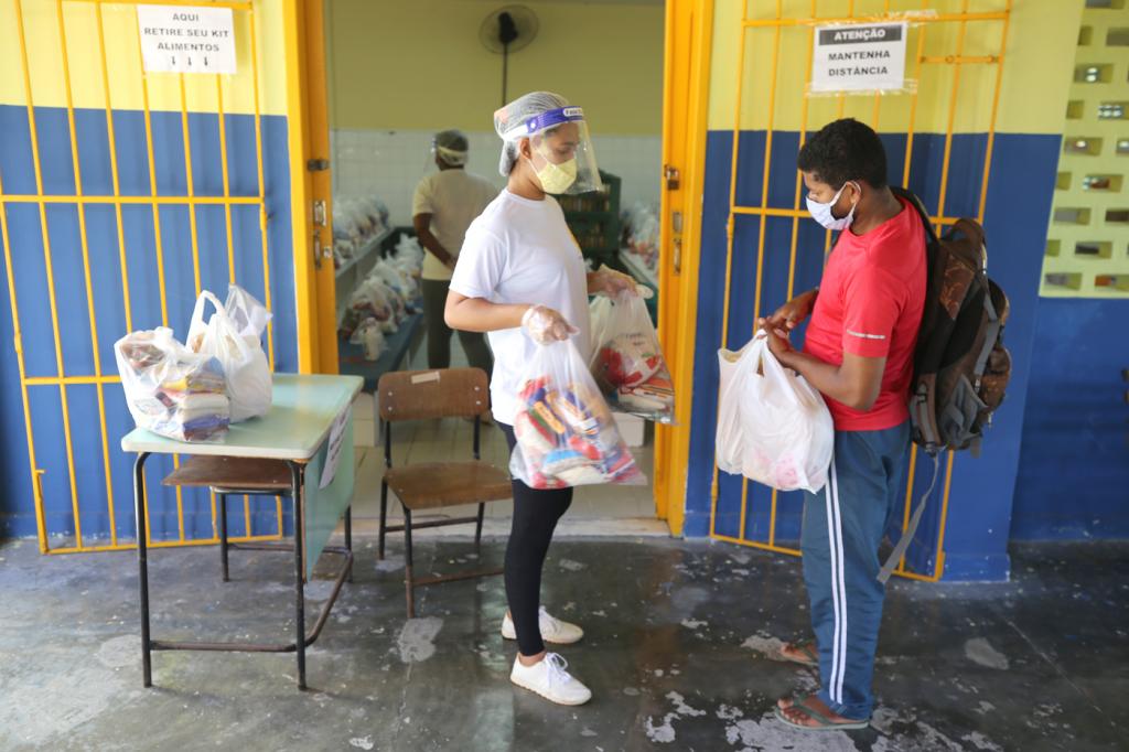 Mesmo com as aulas acontecendo de forma remota, em virtude da pandemia da covid-19, a Prefeitura busca garantir que a alimentação escolar chegue aos alunos da Educação Infantil, Ensino Fundamental e Educação de Jovens e Adultos (EJA) das 74 escolas municipais.