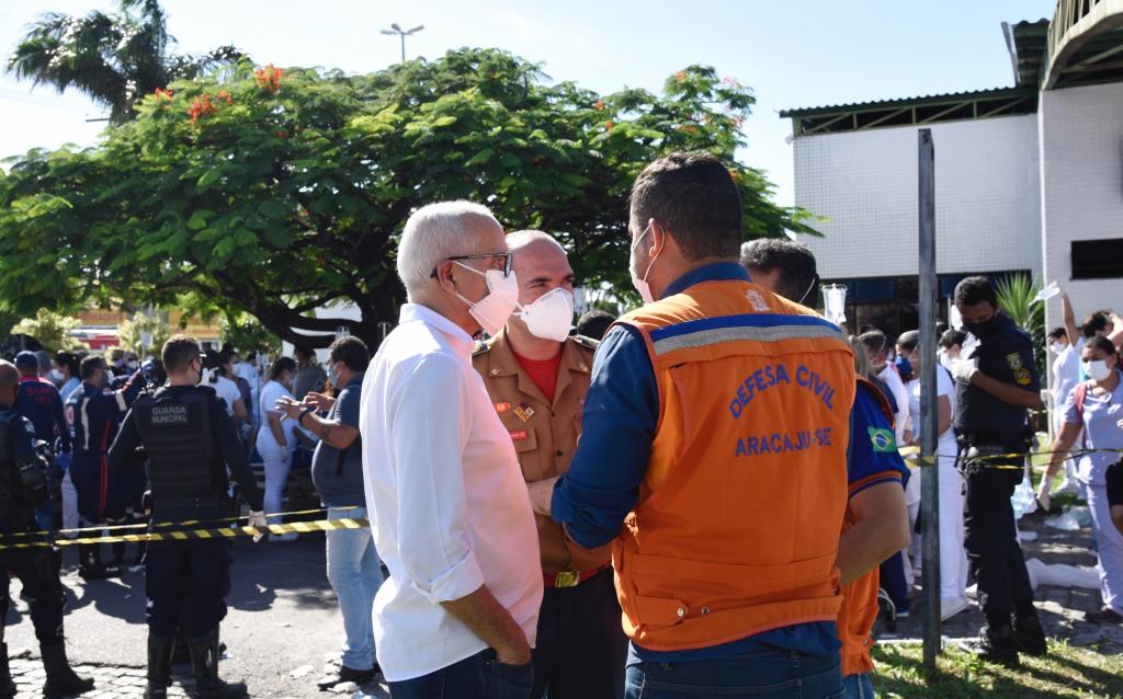 O prefeito Edvaldo Nogueira acompanhou, durante toda a manhã desta sexta-feira, 28, o trabalho das equipes da Prefeitura de Aracaju no Hospital Municipal Nestor Piva,  zona Norte da capital, após a ocorrência de um incêndio, prontamente controlado, na ala para atendimento de pacientes de covid-19 da unidade hospitalar. Assim que foi informado do fato, Edvaldo se deslocou para o local para orientar as equipes da administração municipal na adoção das medidas necessárias e para verificar o andamento do trabalho.