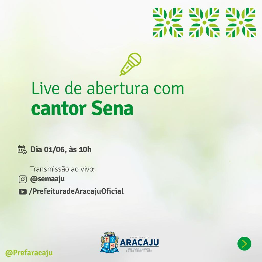 - Abertura com a Live Musical do cantor Sena. A transmissão será por meio dos perfis do Instagram @semaaju e @prefaracaju e no canal do Youtube Prefeitura de Aracaju Oficial, às 10h;