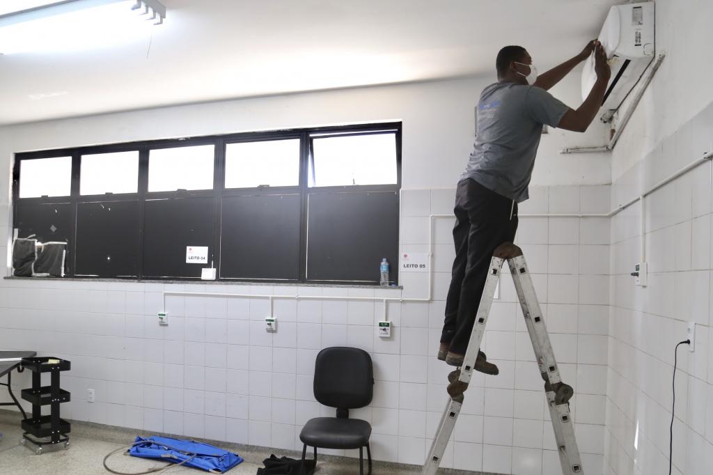 Na área exclusiva para pacientes com covid-19, o atendimento será retomado no container, que foi realocado para a área do fundo da Unidade e terá estabilização com cinco leitos, enfermaria com nove leitos e área de observação.