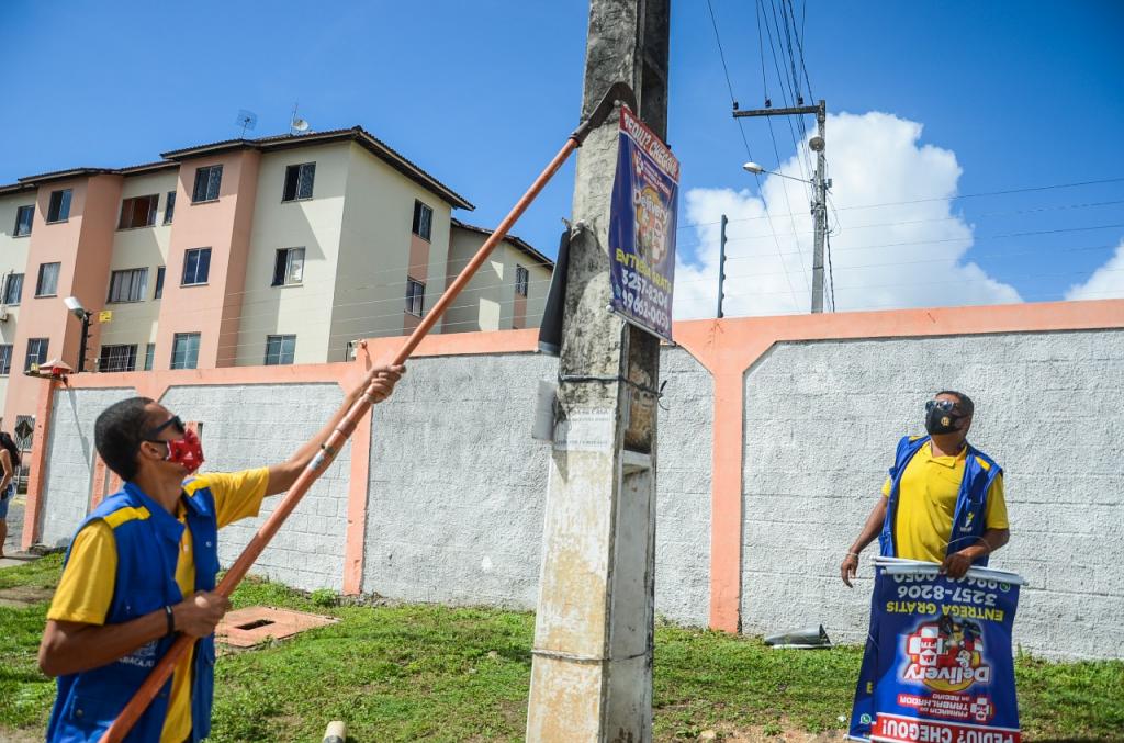 Com operações diárias, os fiscais da Diretoria de Espaços Públicos e Abastecimento (Direpa) da Emsurb percorrem as principais vias atuando na remoção de faixas de qualquer natureza, banners, cavaletes e similares em áreas públicas, afixados nas fachadas, postes e muros.