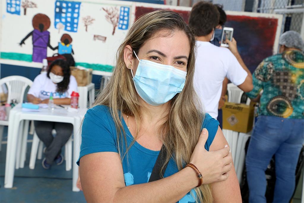 Sem se importar com qual vacina estava tomando, Carol Lira foi empatia, no momento da vacinação.