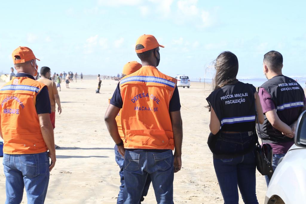 A força-tarefa da Prefeitura de Aracaju, composta por equipes da Defesa Civil, da Guarda Municipal de Aracaju (GMA) e do Procon Aracaju, órgãos que integram a Secretaria da Defesa Social e da Cidadania (Semdec), além de agentes da Superintendência Municipal de Transportes e Trânsito (SMTT), atuaram neste domingo, 27, na faixa litorânea da capital, desde a praia da Coroa do Meio até o Viral.