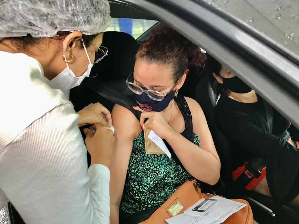 No drive-thru da Sementeira, uma das pessoas vacinadas foi Vanessa Queiroz, que destacou ser preciso "manter o cuidados, mesmo vacinada". "Estou muito feliz e estava há tempos na expectativa pela imunização. Agora, é continuar na torcida para que todos, em breve, estejam vacinados”, disse.