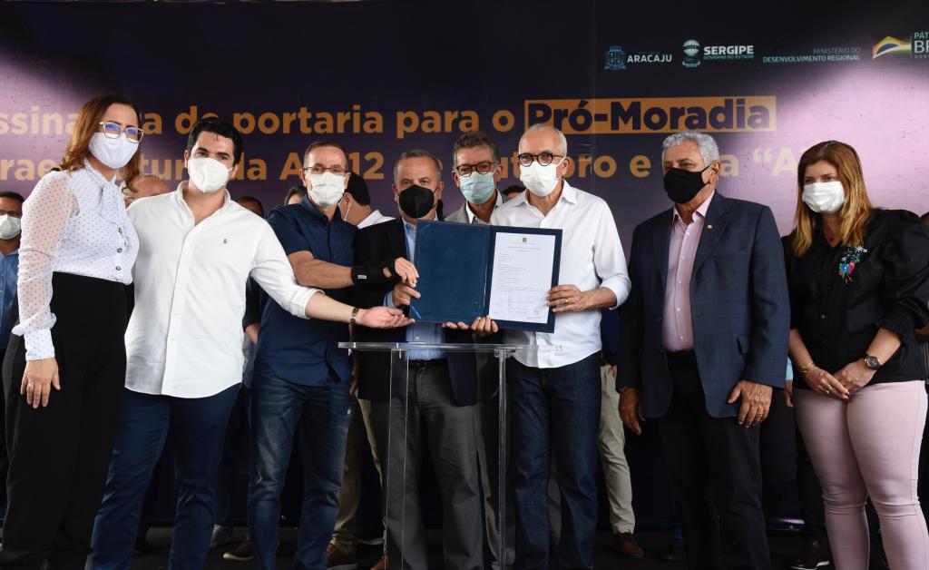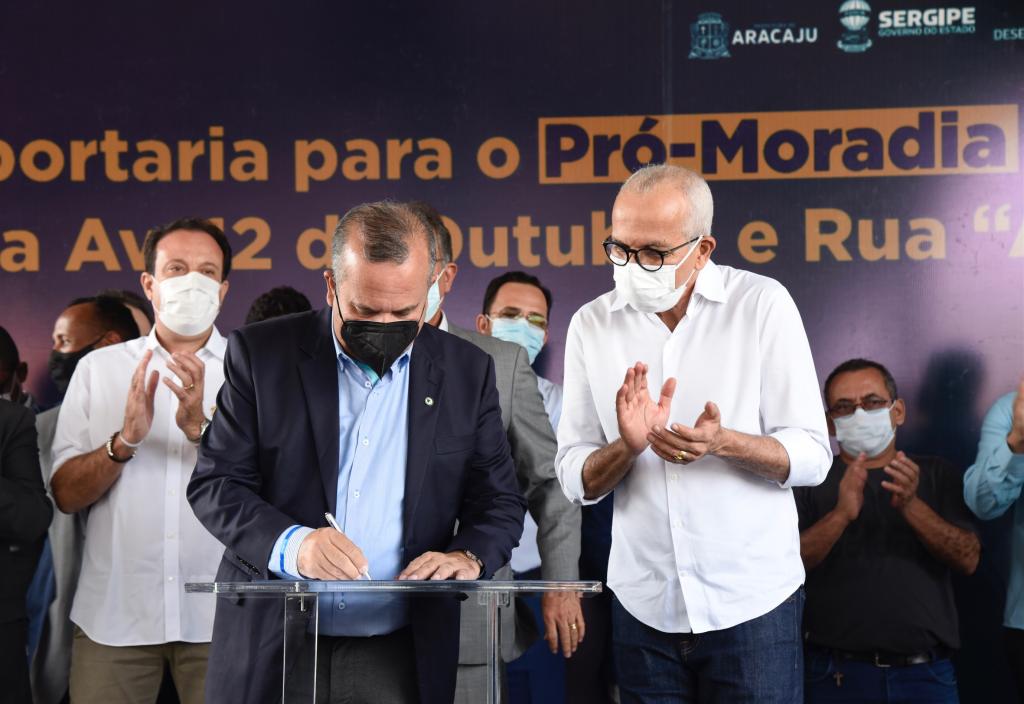 Aracaju será contemplada com mais de R$ 80 milhões pelo programa federal Pró-Moradia. O anúncio foi feito na manhã desta sexta-feira, 9, pelo prefeito Edvaldo Nogueira e pelo ministro do Desenvolvimento Regional, Rogério Marinho, ao assinarem o Ato de Publicação de Seleção da capital sergipana para o programa. Os recursos serão destinados para a realização de obras de urbanização das comunidades Nova Olaria, no bairro Olaria, e Recanto da Paz, no bairro Aeroporto, além da construção de 612 unidades habitacionais e melhorias em mais 755 casas, impactando significativamente na vida dos moradores. Após a formalização do contrato, Edvaldo e o ministro realizaram a entrega das obras de infraestrutura da avenida 12 de Outubro, rua "A" e do loteamento Expansão Siqueira Campos, no bairro 18 do Forte.
