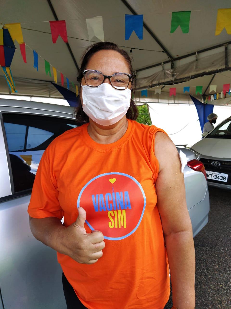 Vacinada no drive thru do Parque da Sementeira, a senhora Neila Cardoso falou o quanto essa vacina significa para ela. “Perdi a minha mãe, que não teve a oportunidade de tomar a vacina, e considero muito importante que as pessoas venham tomar a primeira e a segunda dose. A doença está aí, chegando novas variantes, e a gente tem que se proteger com todos os recursos possíveis”, alertou.