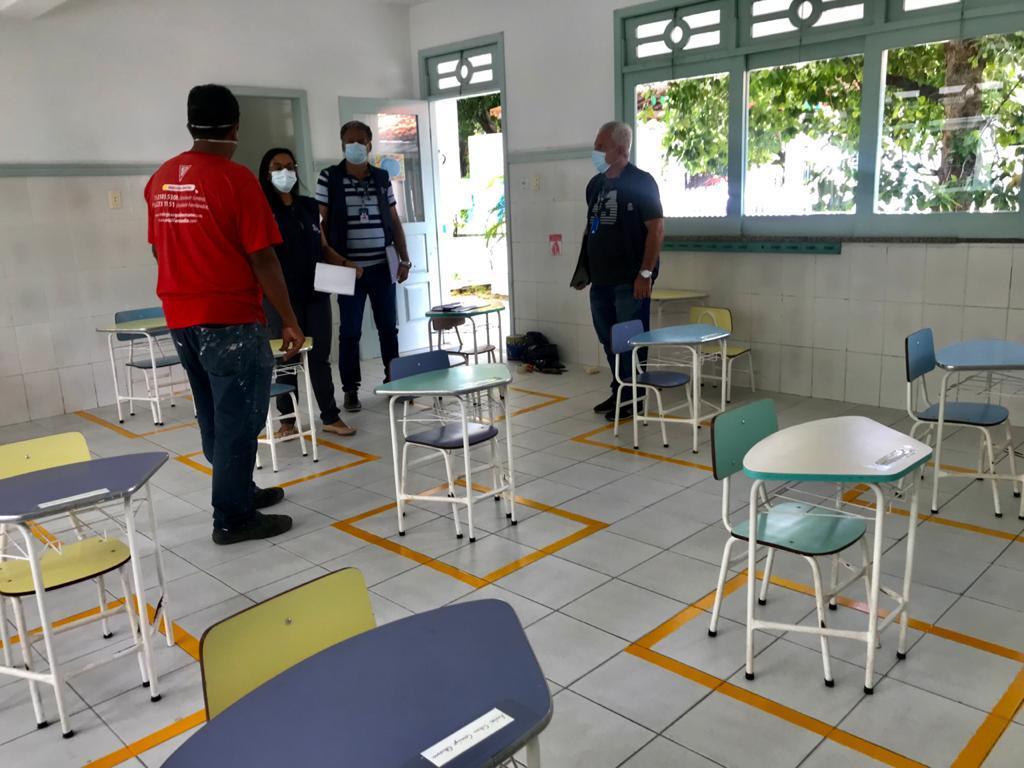 Com o retorno presencial das aulas na rede particular de ensino, a partir de 21 de julho, a Prefeitura de Aracaju, por intermédio da Vigilância Sanitária da Secretaria Municipal da Saúde (SMS), deu continuidade, nesta quinta-feira, 15, ao trabalho de fiscalização em escolas, visando garantir o cumprimento das normas de biossegurança preventivas à covid-19.