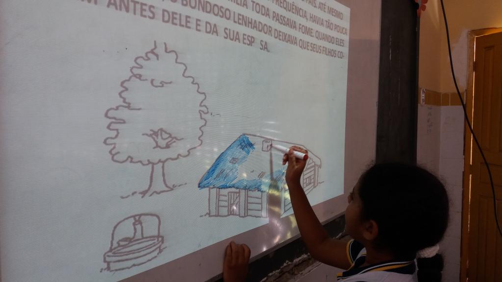 “A lousa é um projetor e quadro interativo e o professor pode utilizar para qualquer disciplina de qualquer ano. Até mesmo a gestão pode utilizá-la para a formação de professores. É possível exibir vídeos, pois a própria lousa tem saída de áudio. Tem as canetas que o aluno pode escrever, desenhar, pintar, fazer leituras, fazer todo o processo de interação. Eles se motivavam, querem participar da aula”, destaca a professora.