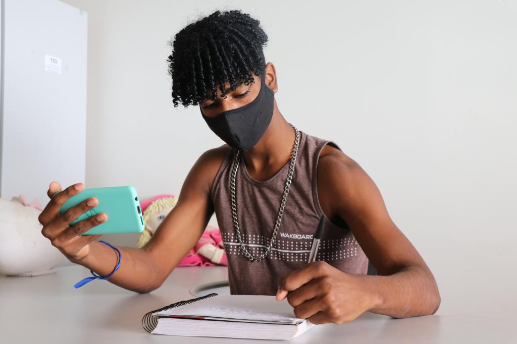 Segundo ele, a qualidade da internet em sua casa não é favorável, então, se dirige até a unidade para se concentrar nos estudos.