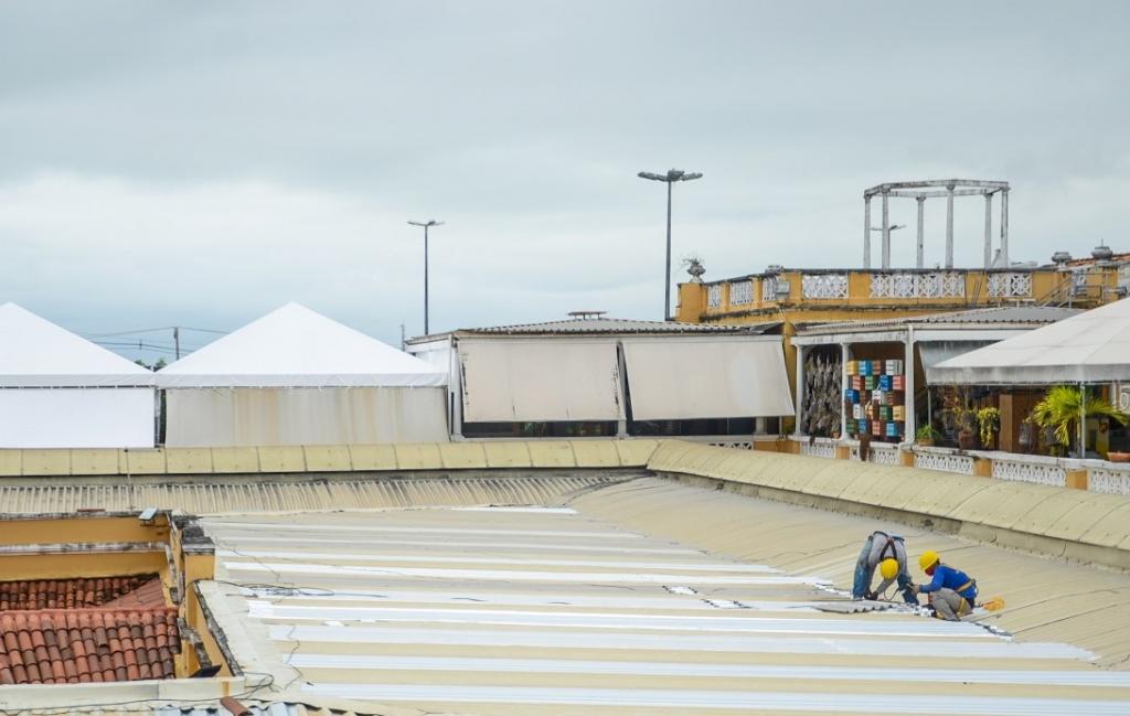 No Mercado Maria Virgínia Leite Franco, um dos principais centros de abastecimento da região central da cidade, além dos mutirões de higienização realizados mensalmente, a Emsurb efetuou, nos últimos dias, o conserto do telhado, substituição de cabos de estabilização do pavimento superior, troca de estruturas metálicas no setor de confecções.