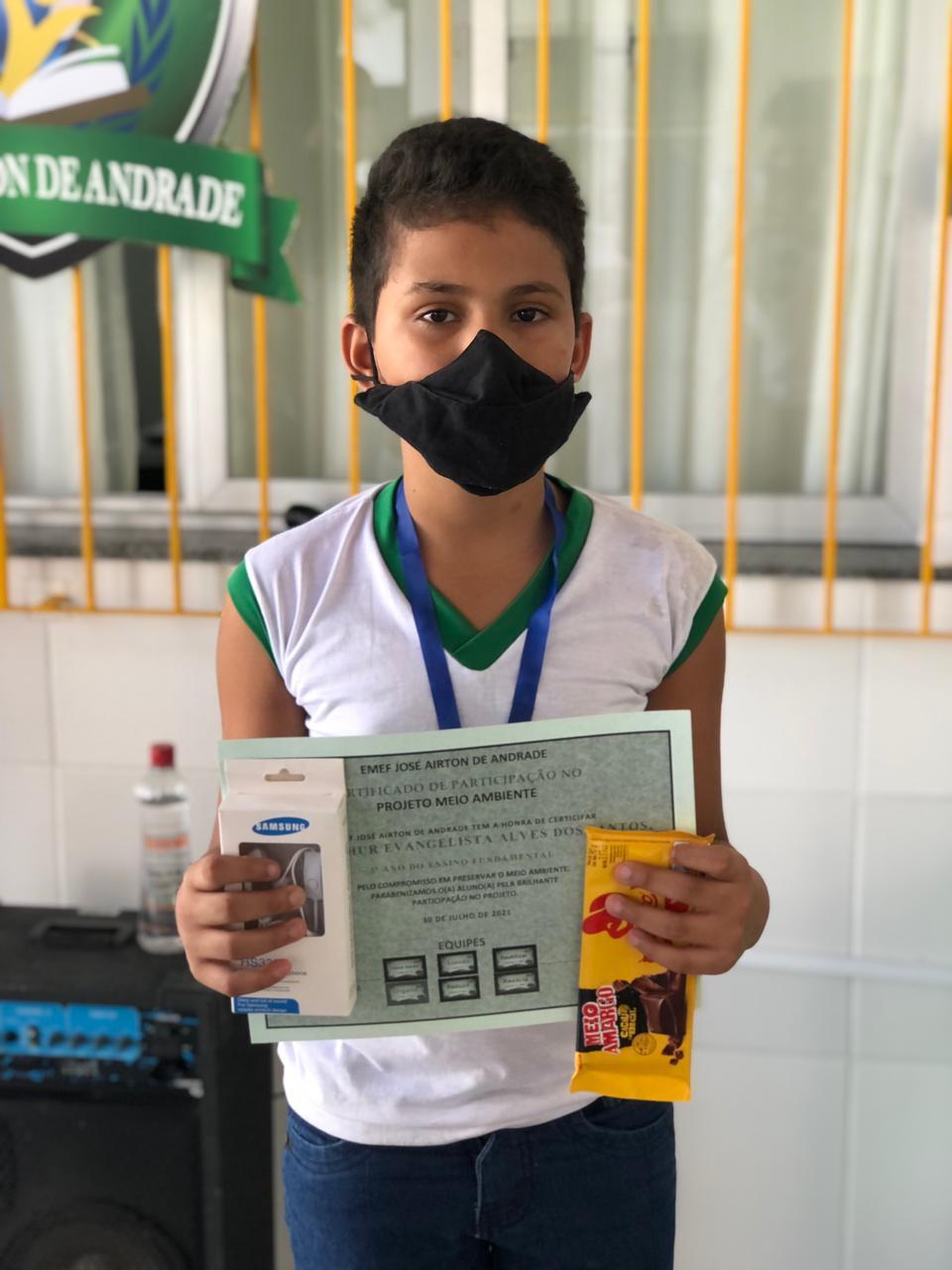 O estudante que conquistou o primeiro lugar na ação foi o Kauã Guilherme, de 8 anos, que conseguiu arrecadas e levar para a escola 91 litros de óleo. Com seus prêmios em mãos, ele expressou a felicidade pelos resultados de seu empenho.