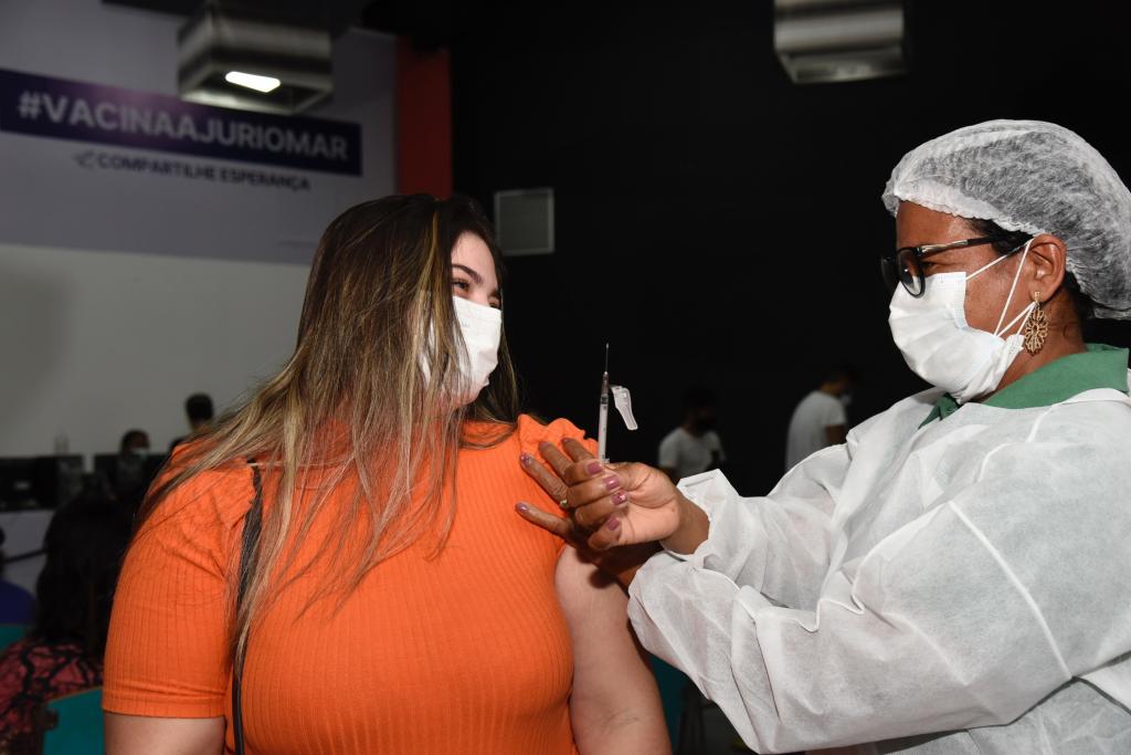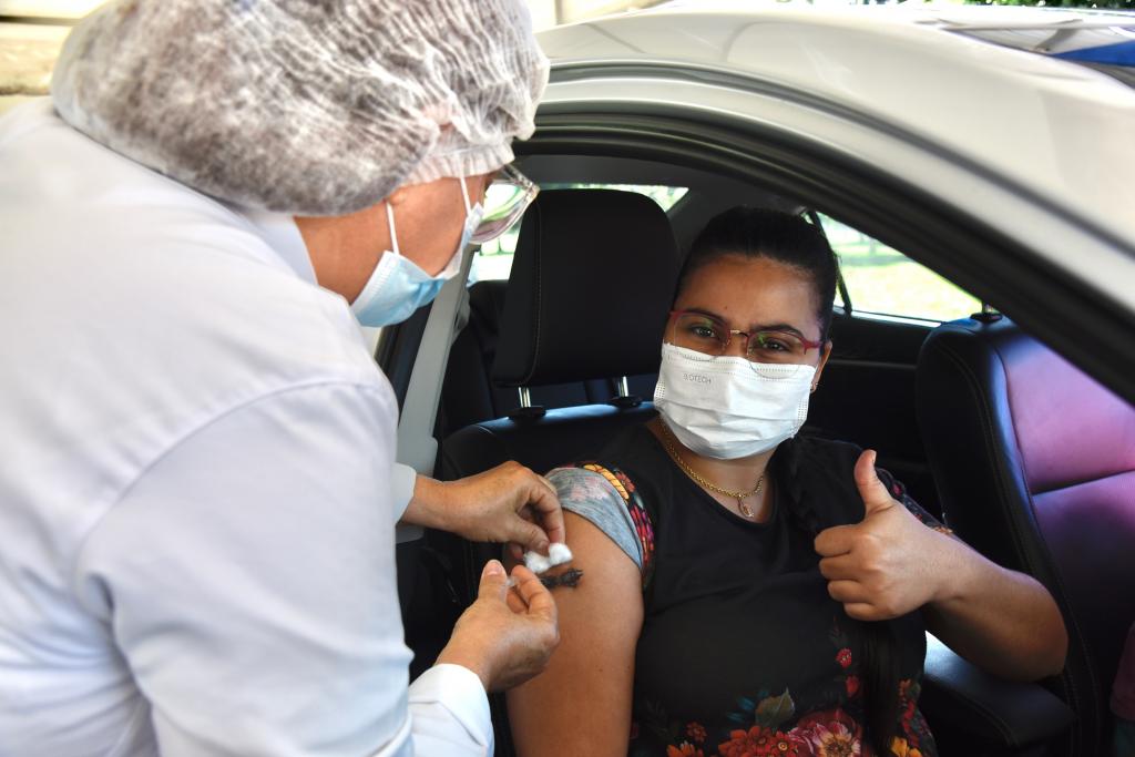 Entre os imunizados, está a auxiliar administrativa Gabriele Félix, que ressaltou a felicidade que sentiu ao ser imunizada hoje, no Estação Cidadania, e a necessidade de manter as medidas de biossegurança.