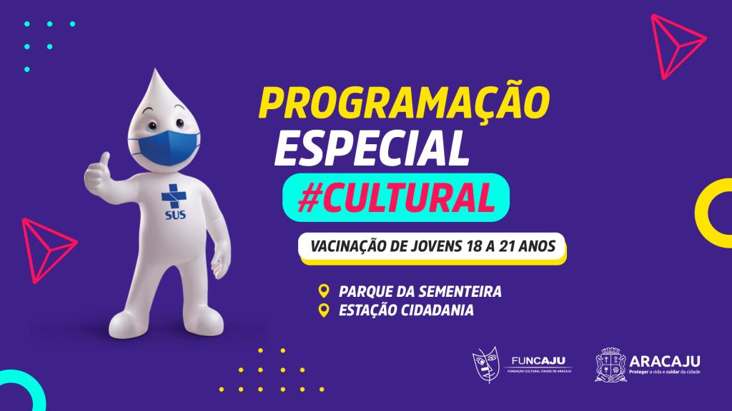 Em ritmo de celebração pelo desfecho da imunização contra a covid-19 em primeira dose da população adulta de Aracaju, a programação especial e multidisciplinar preparada pela Prefeitura de Aracaju para imunização dos jovens entre 18 e 21 anos, neste sábado e domingo, dias 21 e 22, será marcada pelas atividades culturais programadas para dois importantes pontos de vacinação: o Parque Augusto Franco (Parque da Sementeira), no bairro Jardins, e Estação Cidadania, no Bugio.