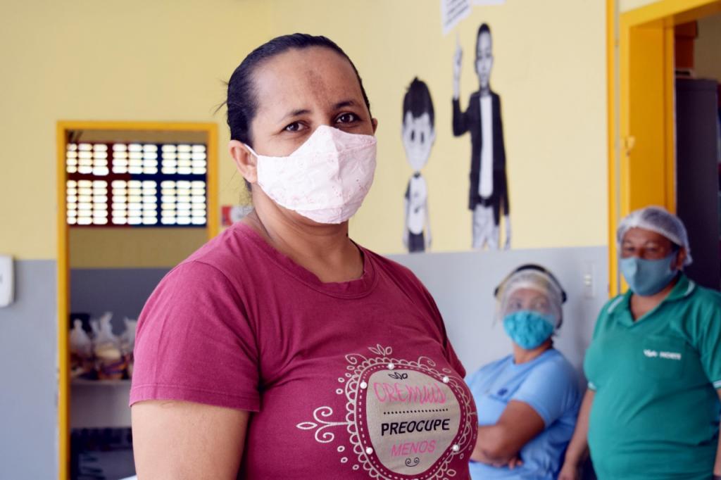 A dona de casa Ivaci Santos é mãe de uma aluna matriculada na Emef Olavo Bilac. Desde a primeira etapa de distribuição dos kits, em 2020, todos os meses ela vai retirar os alimentos. "Sempre chegam em uma boa hora. No final do mês, como agora, começa a faltar um açúcar, um feijão e com os alimentos do kit conseguimos repor", conta Ivaci.