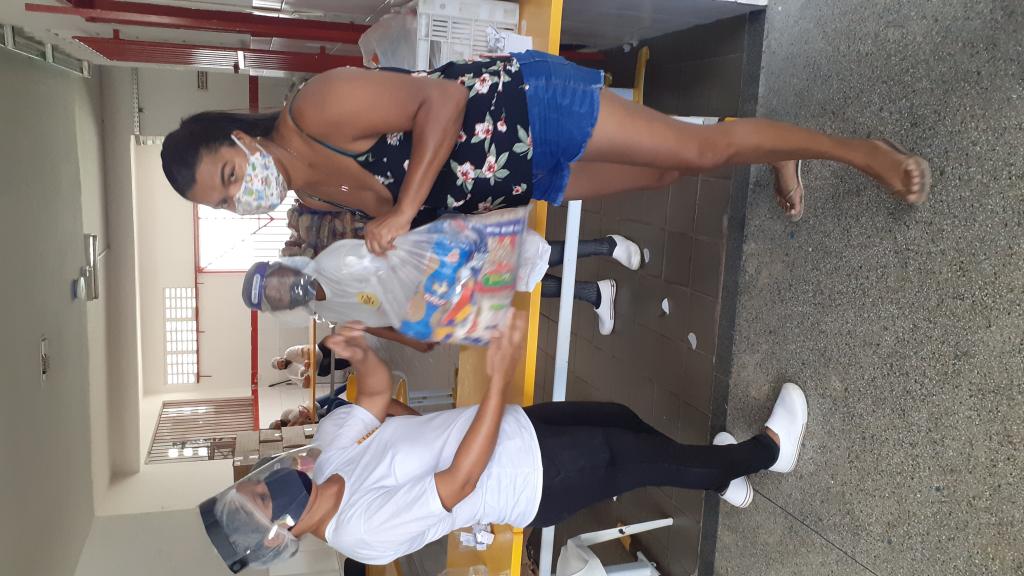 Cada aluno recebeu um conjunto de produtos que seriam servidos na merenda e equivalem a quatro refeições diárias para os alunos de creche e uma refeição diária para os alunos do Ensino Fundamental e da Educação de Jovens e Adultos.